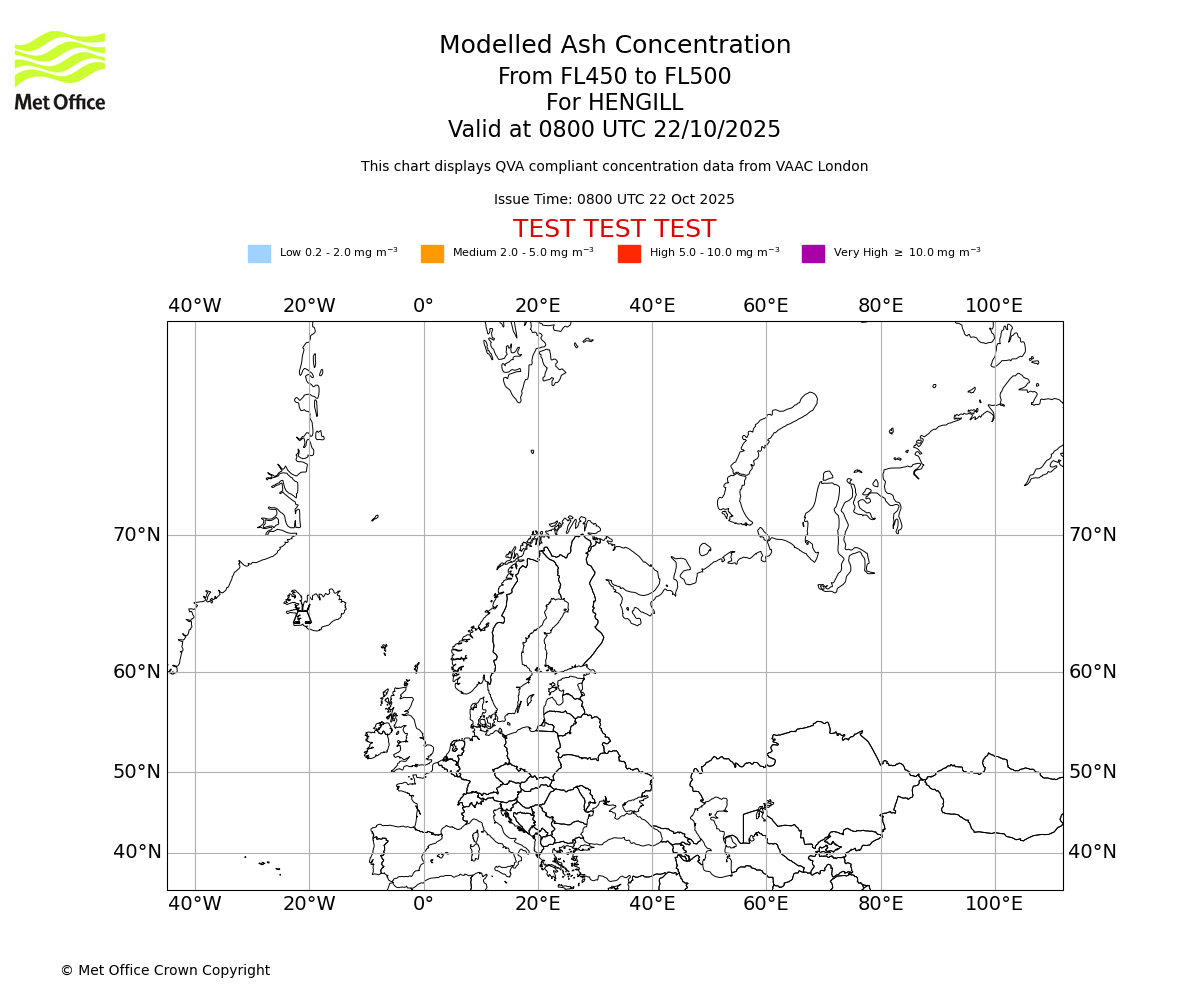 In accordance with ICAO Annex 3, Amendment 82 VAAC London will provide operational QVA forecasts from 27 November 2025 and these will be made available via a VAAC London QVA API information service. These charts are currently provided for test and evaluation purposes (not for operational use) until the introduction of the operational service.