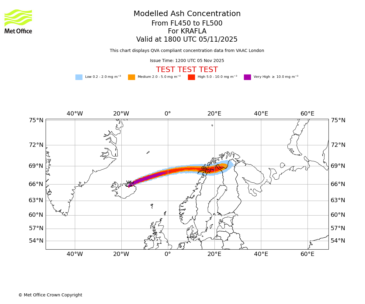 In accordance with ICAO Annex 3, Amendment 82 VAAC London will provide operational QVA forecasts from 27 November 2025 and these will be made available via a VAAC London QVA API information service. These charts are currently provided for test and evaluation purposes (not for operational use) until the introduction of the operational service.