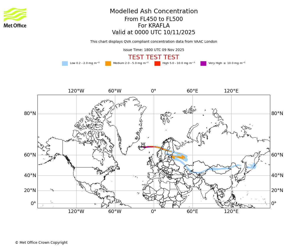 In accordance with ICAO Annex 3, Amendment 82 VAAC London will provide operational QVA forecasts from 27 November 2025 and these will be made available via a VAAC London QVA API information service. These charts are currently provided for test and evaluation purposes (not for operational use) until the introduction of the operational service.