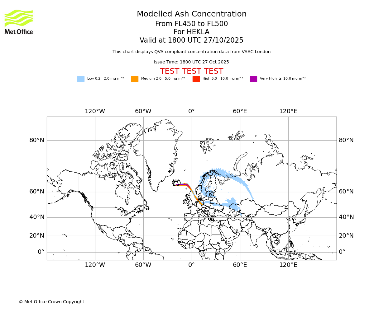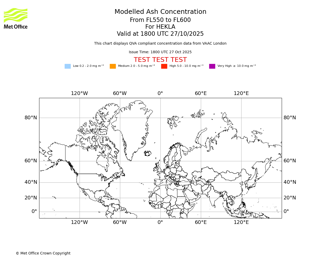 In accordance with ICAO Annex 3, Amendment 82 VAAC London will provide operational QVA forecasts from 27 November 2025 and these will be made available via a VAAC London QVA API information service. These charts are currently provided for test and evaluation purposes (not for operational use) until the introduction of the operational service.