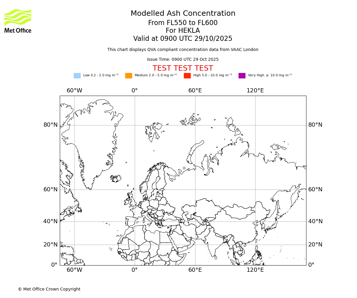 In accordance with ICAO Annex 3, Amendment 82 VAAC London will provide operational QVA forecasts from 27 November 2025 and these will be made available via a VAAC London QVA API information service. These charts are currently provided for test and evaluation purposes (not for operational use) until the introduction of the operational service.