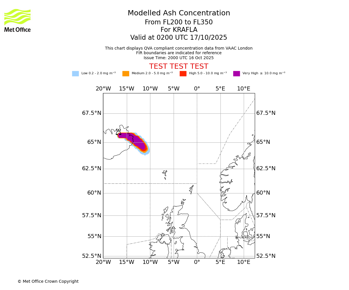 In accordance with ICAO Annex 3, Amendment 82 VAAC London will provide operational QVA forecasts from 27 November 2025 and these will be made available via a VAAC London QVA API information service. These charts are currently provided for test and evaluation purposes (not for operational use) until the introduction of the operational service.