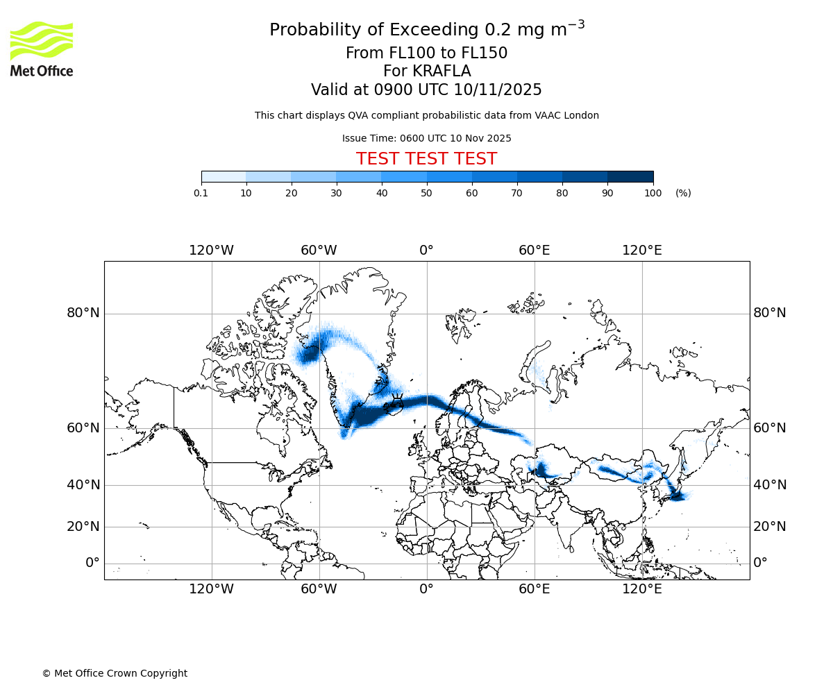 In accordance with ICAO Annex 3, Amendment 82 VAAC London will provide operational QVA forecasts from 27 November 2025 and these will be made available via a VAAC London QVA API information service. These charts are currently provided for test and evaluation purposes (not for operational use) until the introduction of the operational service.