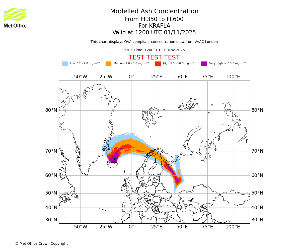 In accordance with ICAO Annex 3, Amendment 82 VAAC London will provide operational QVA forecasts from 27 November 2025 and these will be made available via a VAAC London QVA API information service. These charts are currently provided for test and evaluation purposes (not for operational use) until the introduction of the operational service.