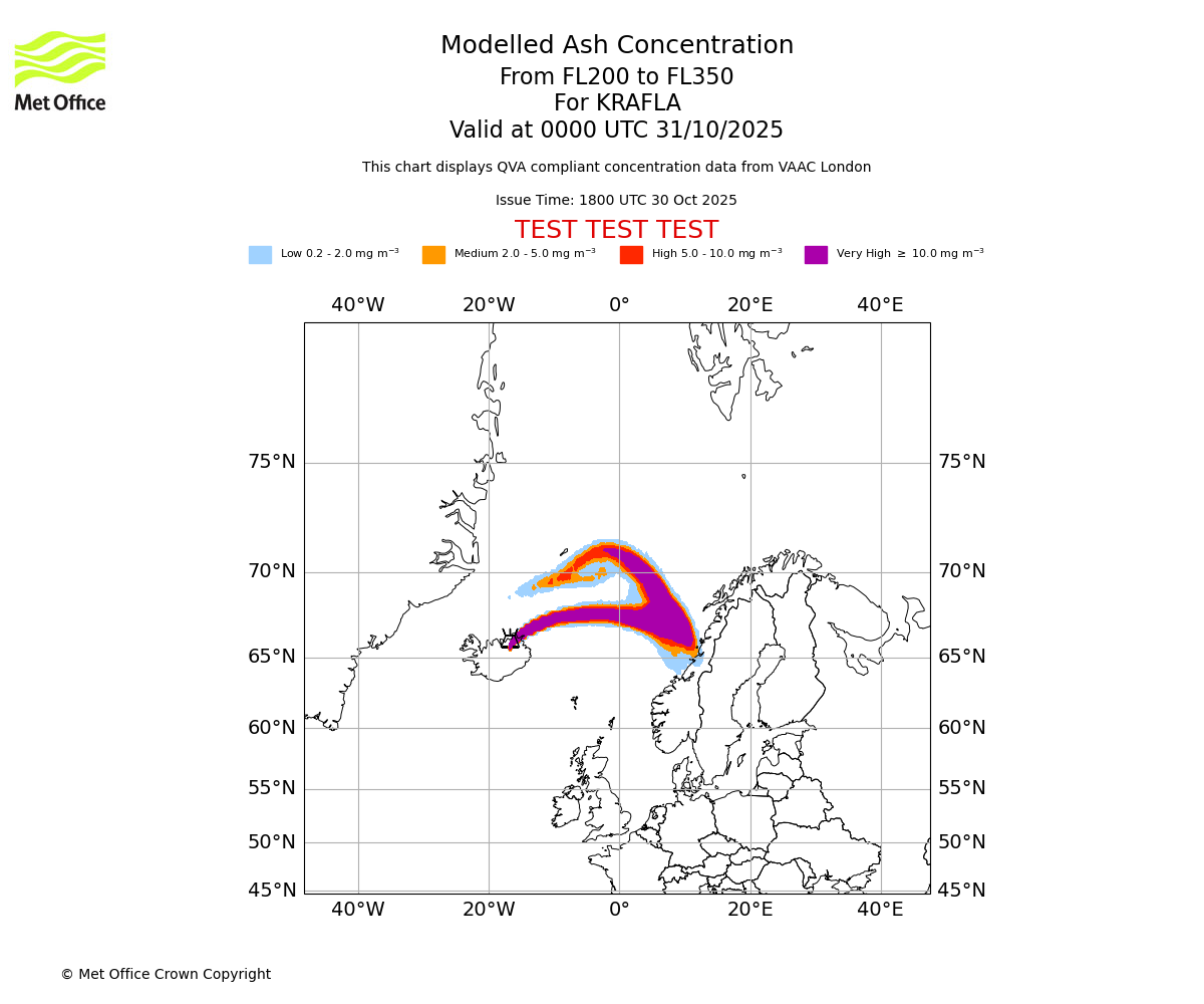 In accordance with ICAO Annex 3, Amendment 82 VAAC London will provide operational QVA forecasts from 27 November 2025 and these will be made available via a VAAC London QVA API information service. These charts are currently provided for test and evaluation purposes (not for operational use) until the introduction of the operational service.