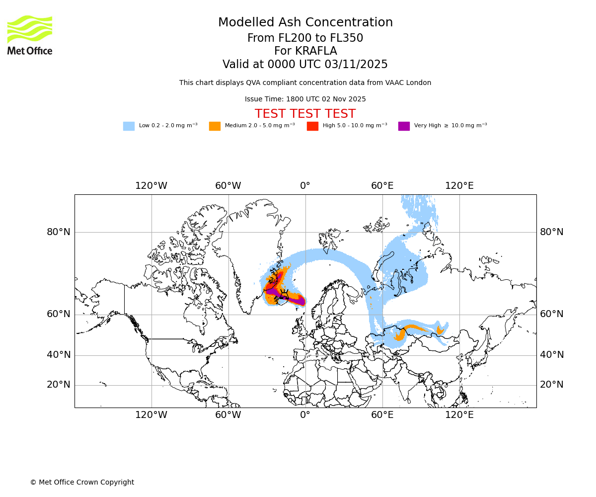 In accordance with ICAO Annex 3, Amendment 82 VAAC London will provide operational QVA forecasts from 27 November 2025 and these will be made available via a VAAC London QVA API information service. These charts are currently provided for test and evaluation purposes (not for operational use) until the introduction of the operational service.
