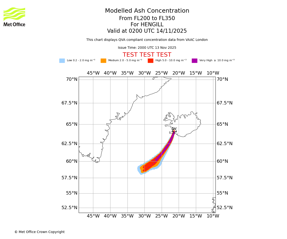 In accordance with ICAO Annex 3, Amendment 82 VAAC London will provide operational QVA forecasts from 27 November 2025 and these will be made available via a VAAC London QVA API information service. These charts are currently provided for test and evaluation purposes (not for operational use) until the introduction of the operational service.