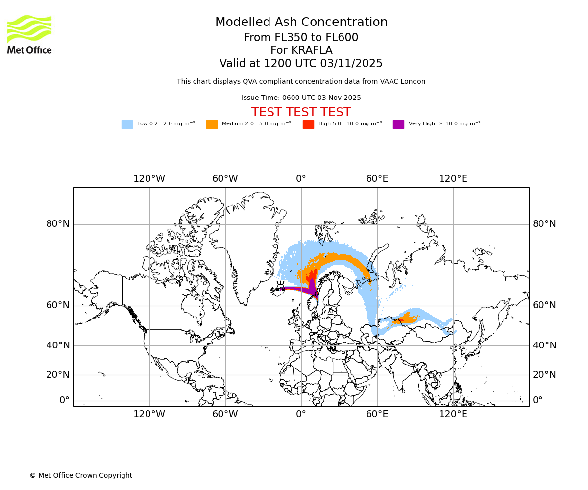 In accordance with ICAO Annex 3, Amendment 82 VAAC London will provide operational QVA forecasts from 27 November 2025 and these will be made available via a VAAC London QVA API information service. These charts are currently provided for test and evaluation purposes (not for operational use) until the introduction of the operational service.