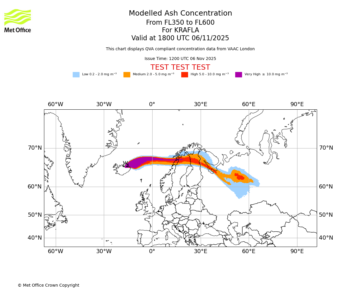 In accordance with ICAO Annex 3, Amendment 82 VAAC London will provide operational QVA forecasts from 27 November 2025 and these will be made available via a VAAC London QVA API information service. These charts are currently provided for test and evaluation purposes (not for operational use) until the introduction of the operational service.