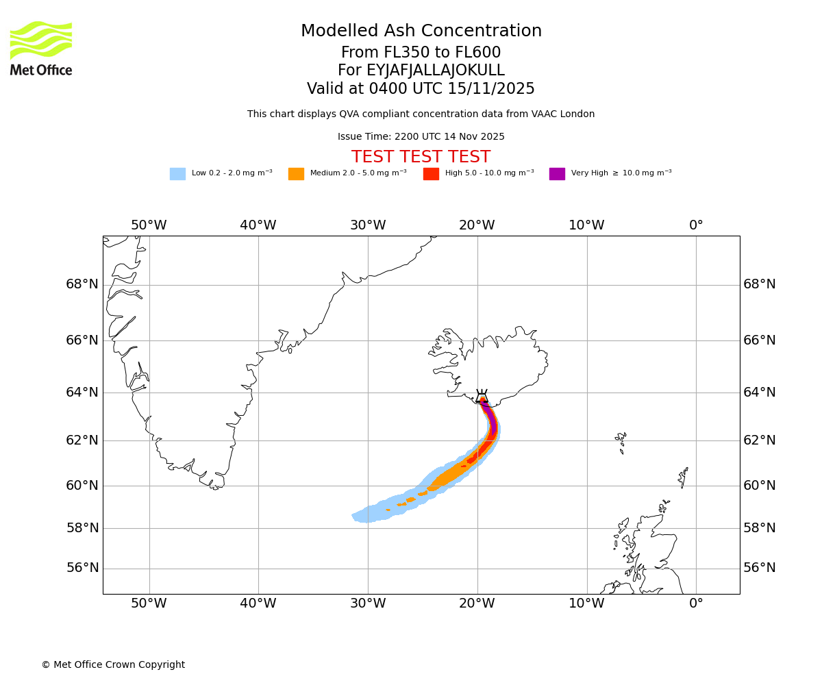 In accordance with ICAO Annex 3, Amendment 82 VAAC London will provide operational QVA forecasts from 27 November 2025 and these will be made available via a VAAC London QVA API information service. These charts are currently provided for test and evaluation purposes (not for operational use) until the introduction of the operational service.