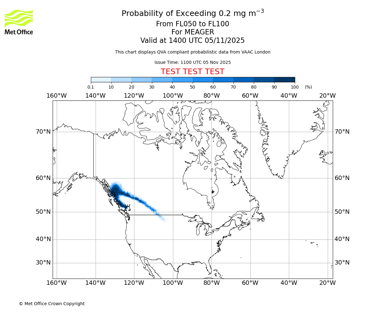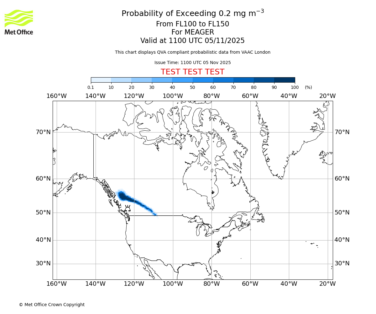 In accordance with ICAO Annex 3, Amendment 82 VAAC London will provide operational QVA forecasts from 27 November 2025 and these will be made available via a VAAC London QVA API information service. These charts are currently provided for test and evaluation purposes (not for operational use) until the introduction of the operational service.