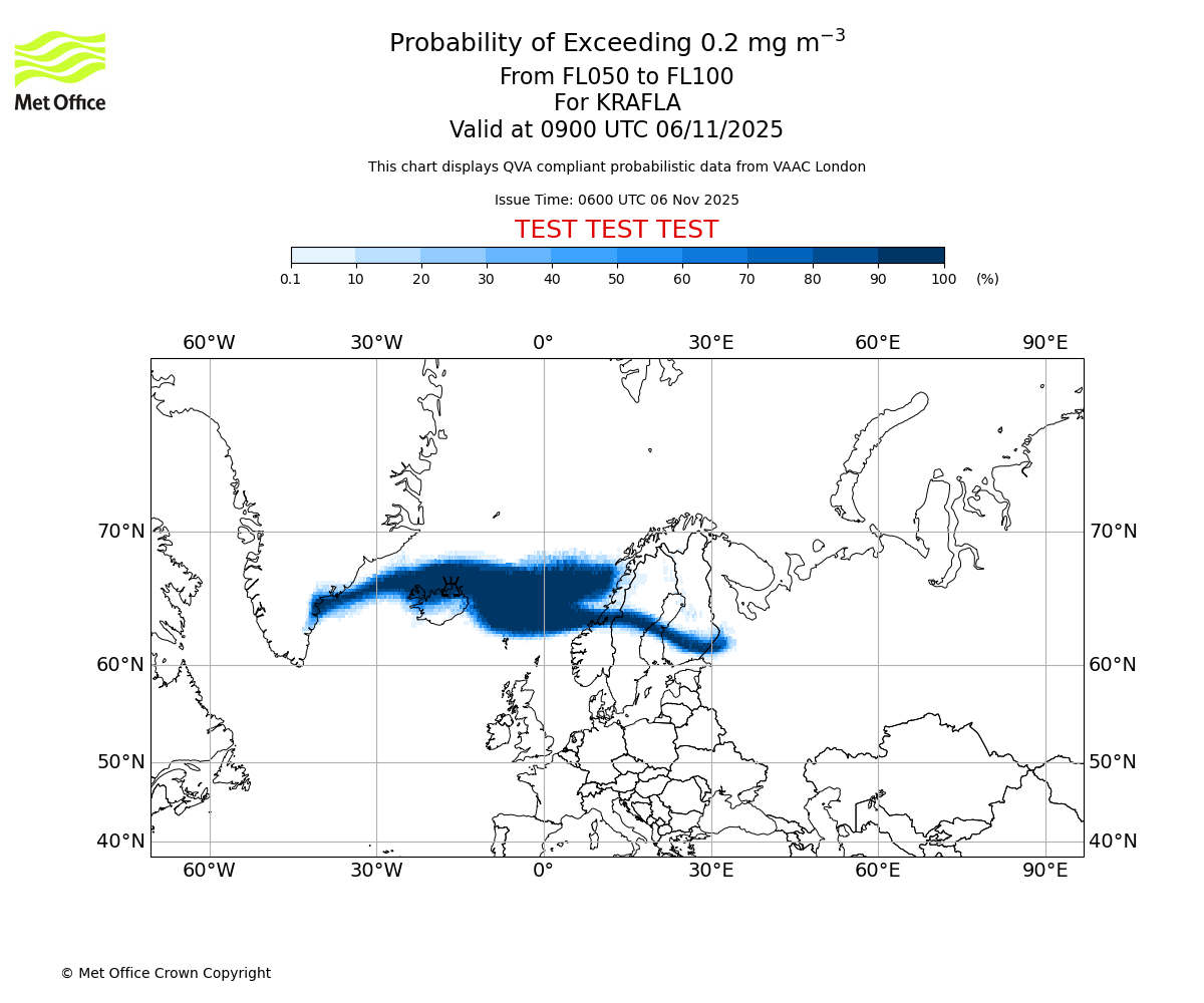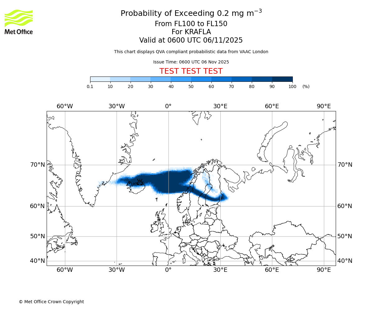 In accordance with ICAO Annex 3, Amendment 82 VAAC London will provide operational QVA forecasts from 27 November 2025 and these will be made available via a VAAC London QVA API information service. These charts are currently provided for test and evaluation purposes (not for operational use) until the introduction of the operational service.