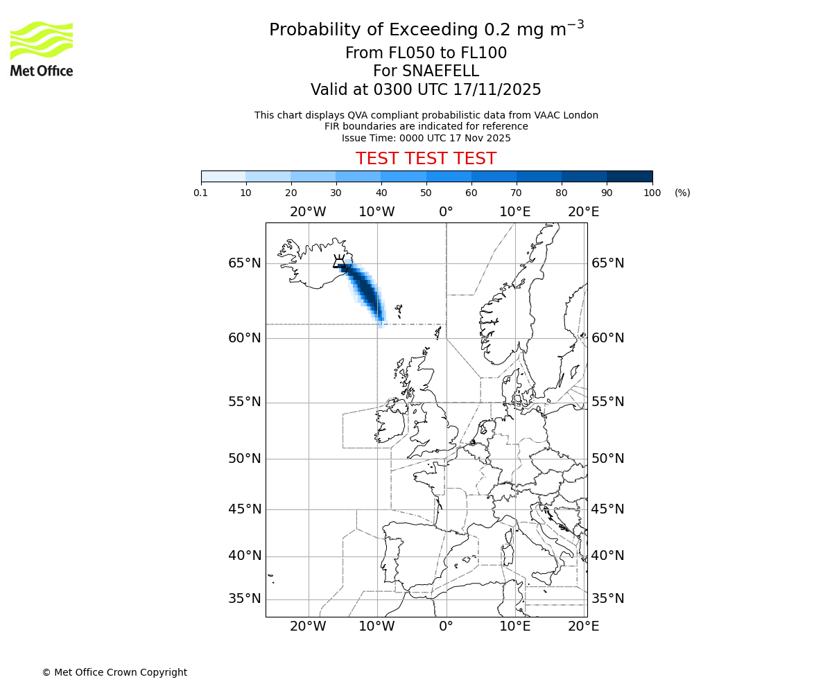 In accordance with ICAO Annex 3, Amendment 82 VAAC London will provide operational QVA forecasts from 27 November 2025 and these will be made available via a VAAC London QVA API information service. These charts are currently provided for test and evaluation purposes (not for operational use) until the introduction of the operational service.