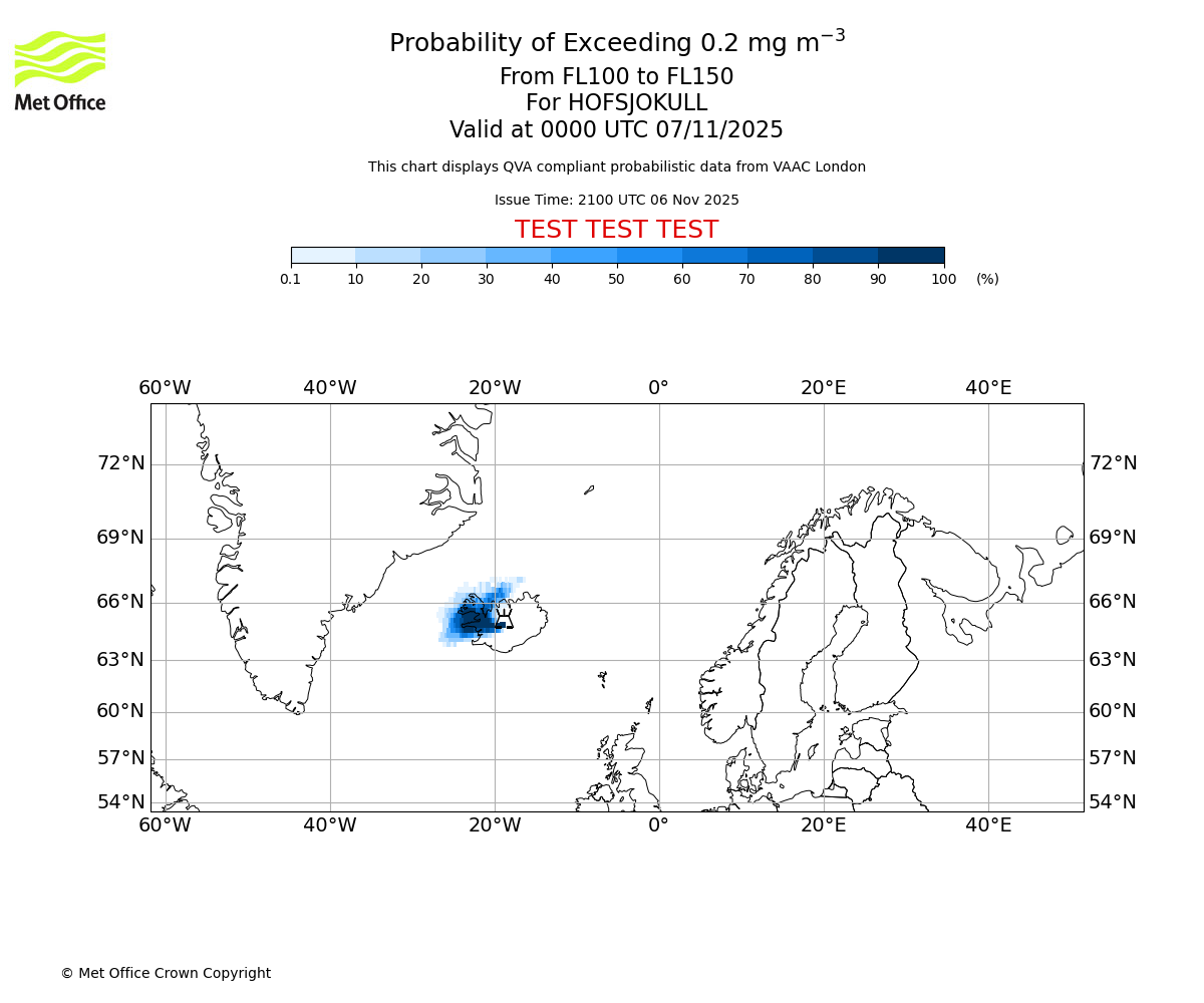In accordance with ICAO Annex 3, Amendment 82 VAAC London will provide operational QVA forecasts from 27 November 2025 and these will be made available via a VAAC London QVA API information service. These charts are currently provided for test and evaluation purposes (not for operational use) until the introduction of the operational service.