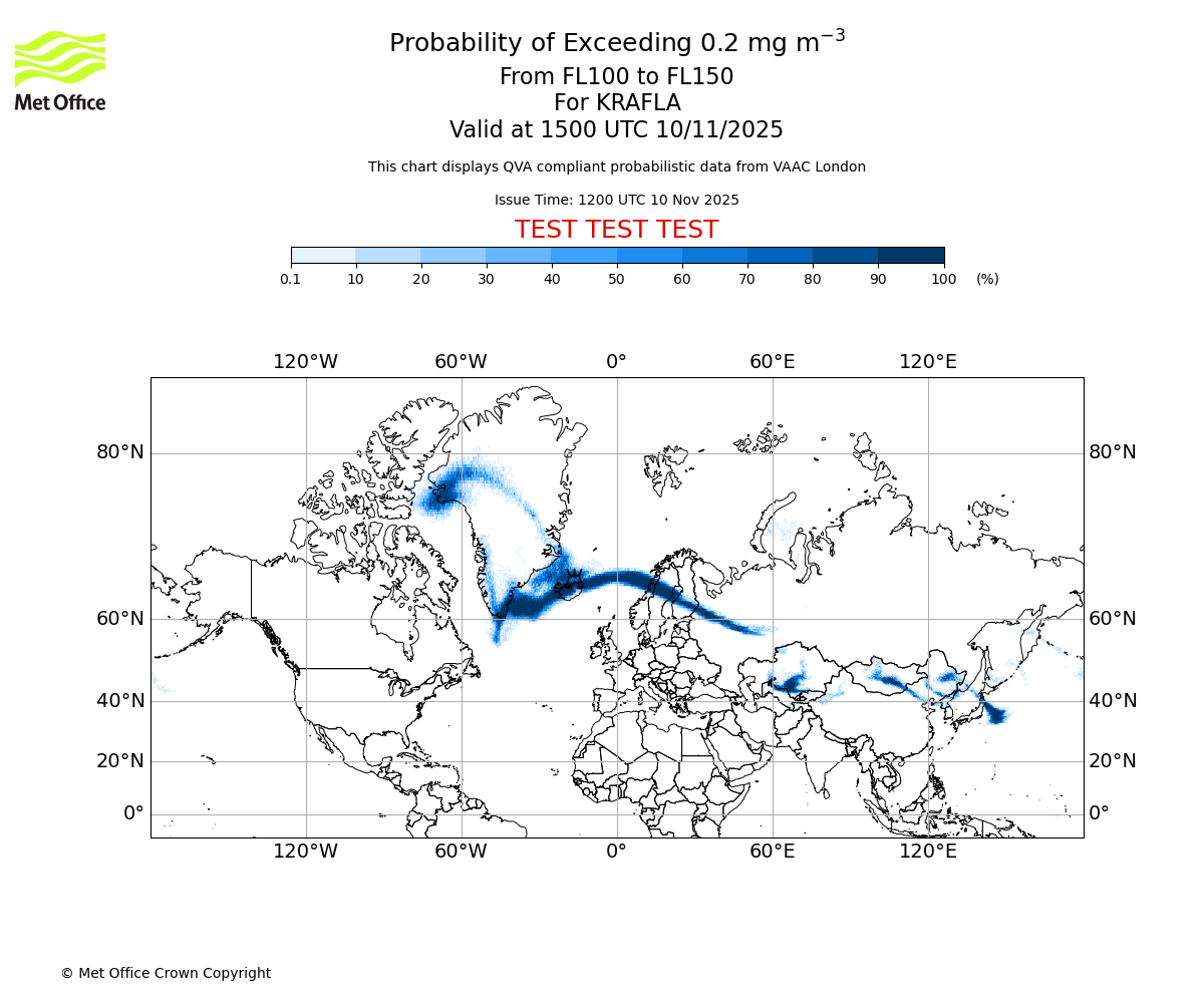 In accordance with ICAO Annex 3, Amendment 82 VAAC London will provide operational QVA forecasts from 27 November 2025 and these will be made available via a VAAC London QVA API information service. These charts are currently provided for test and evaluation purposes (not for operational use) until the introduction of the operational service.