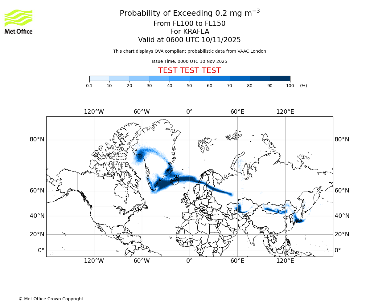 In accordance with ICAO Annex 3, Amendment 82 VAAC London will provide operational QVA forecasts from 27 November 2025 and these will be made available via a VAAC London QVA API information service. These charts are currently provided for test and evaluation purposes (not for operational use) until the introduction of the operational service.