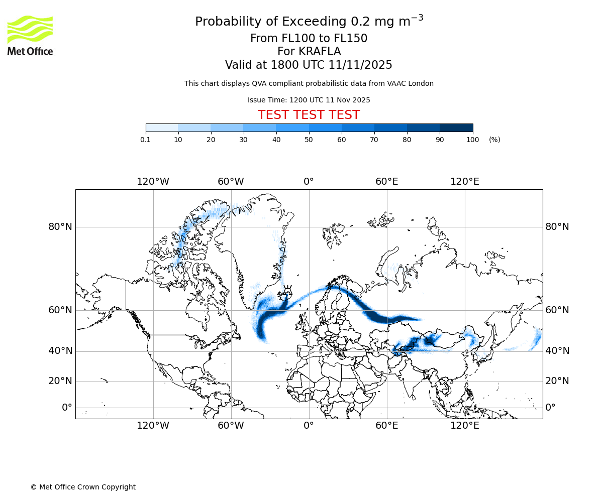 In accordance with ICAO Annex 3, Amendment 82 VAAC London will provide operational QVA forecasts from 27 November 2025 and these will be made available via a VAAC London QVA API information service. These charts are currently provided for test and evaluation purposes (not for operational use) until the introduction of the operational service.
