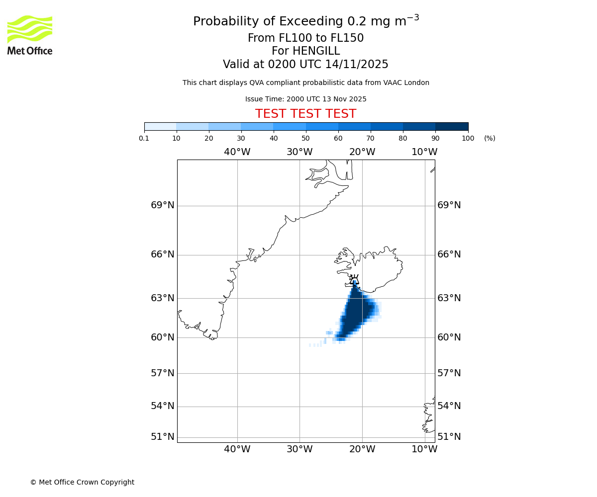 In accordance with ICAO Annex 3, Amendment 82 VAAC London will provide operational QVA forecasts from 27 November 2025 and these will be made available via a VAAC London QVA API information service. These charts are currently provided for test and evaluation purposes (not for operational use) until the introduction of the operational service.
