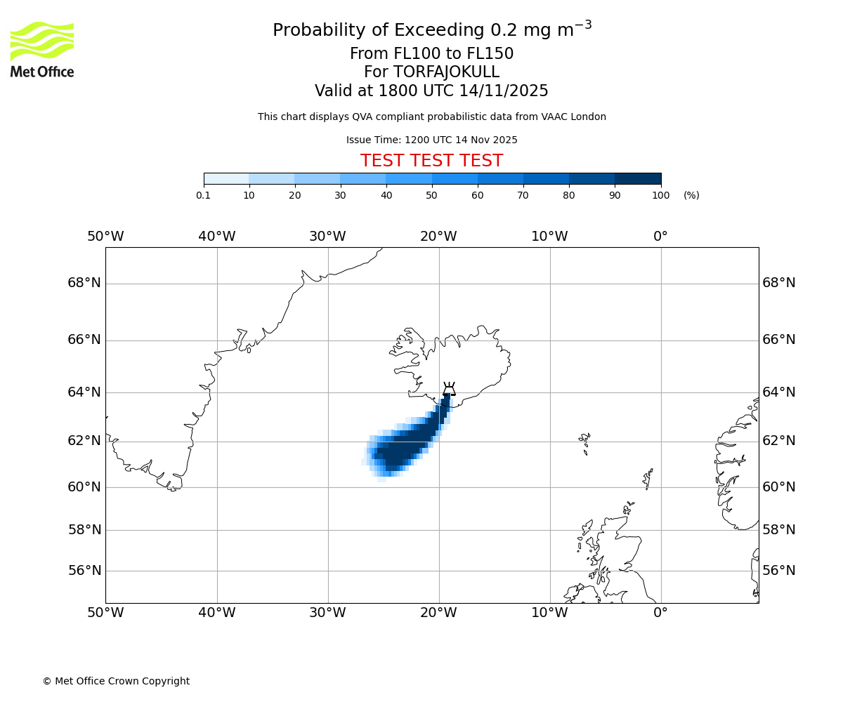 In accordance with ICAO Annex 3, Amendment 82 VAAC London will provide operational QVA forecasts from 27 November 2025 and these will be made available via a VAAC London QVA API information service. These charts are currently provided for test and evaluation purposes (not for operational use) until the introduction of the operational service.