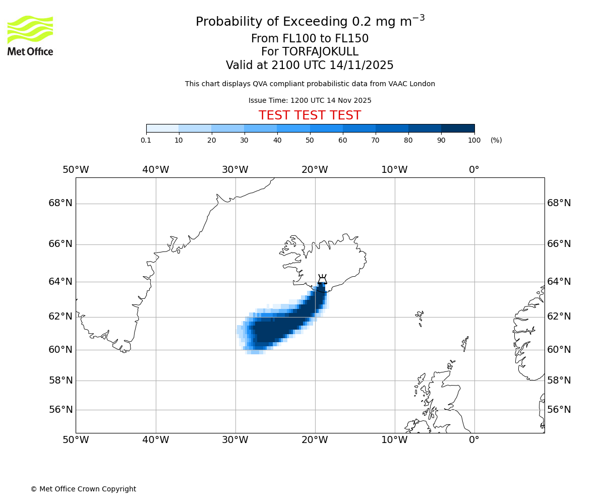 In accordance with ICAO Annex 3, Amendment 82 VAAC London will provide operational QVA forecasts from 27 November 2025 and these will be made available via a VAAC London QVA API information service. These charts are currently provided for test and evaluation purposes (not for operational use) until the introduction of the operational service.