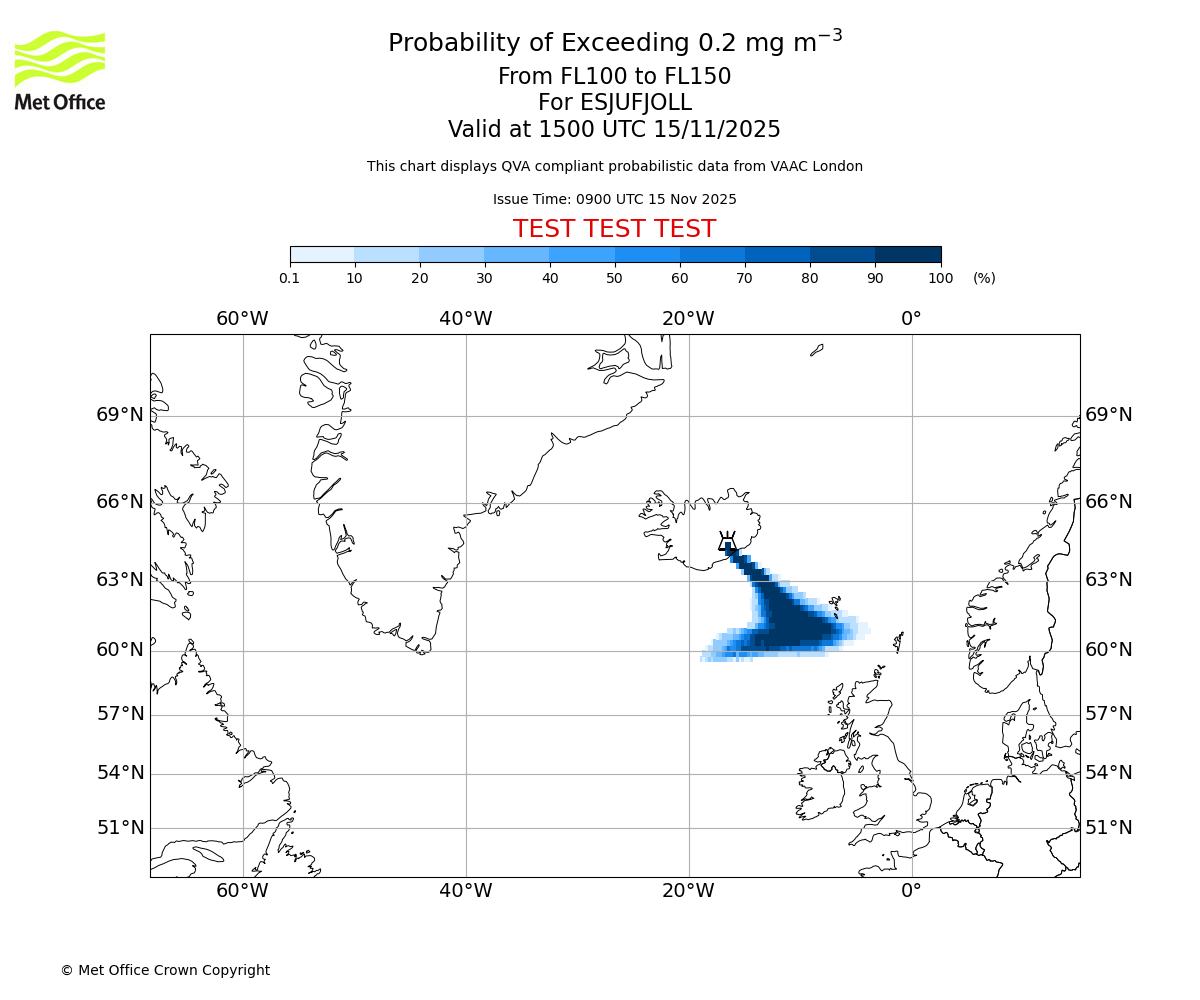 In accordance with ICAO Annex 3, Amendment 82 VAAC London will provide operational QVA forecasts from 27 November 2025 and these will be made available via a VAAC London QVA API information service. These charts are currently provided for test and evaluation purposes (not for operational use) until the introduction of the operational service.