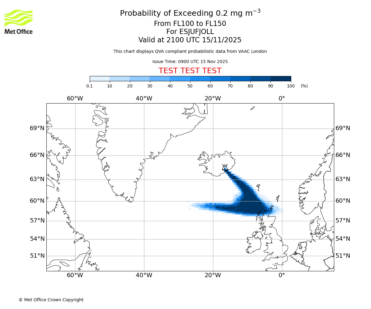 In accordance with ICAO Annex 3, Amendment 82 VAAC London will provide operational QVA forecasts from 27 November 2025 and these will be made available via a VAAC London QVA API information service. These charts are currently provided for test and evaluation purposes (not for operational use) until the introduction of the operational service.