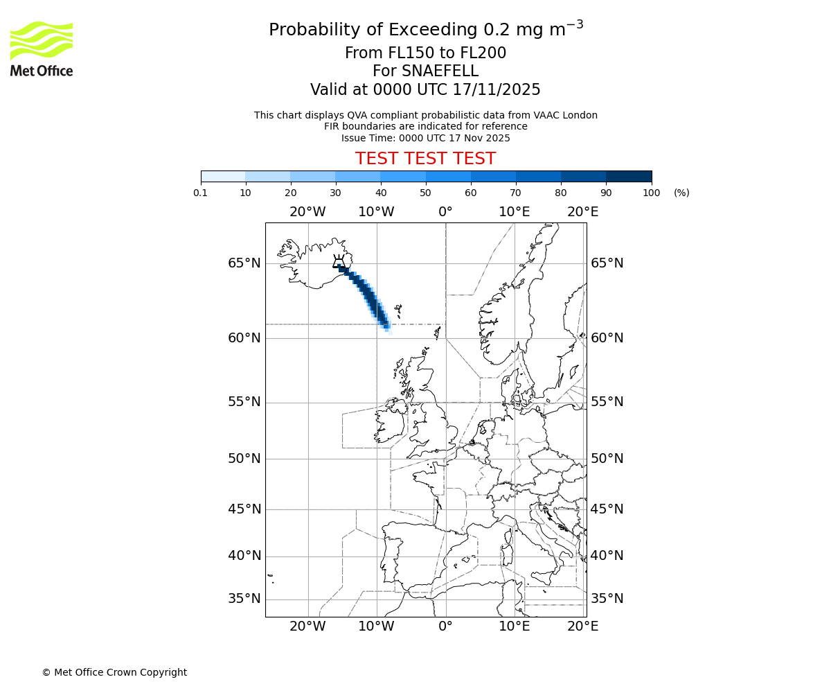 In accordance with ICAO Annex 3, Amendment 82 VAAC London will provide operational QVA forecasts from 27 November 2025 and these will be made available via a VAAC London QVA API information service. These charts are currently provided for test and evaluation purposes (not for operational use) until the introduction of the operational service.