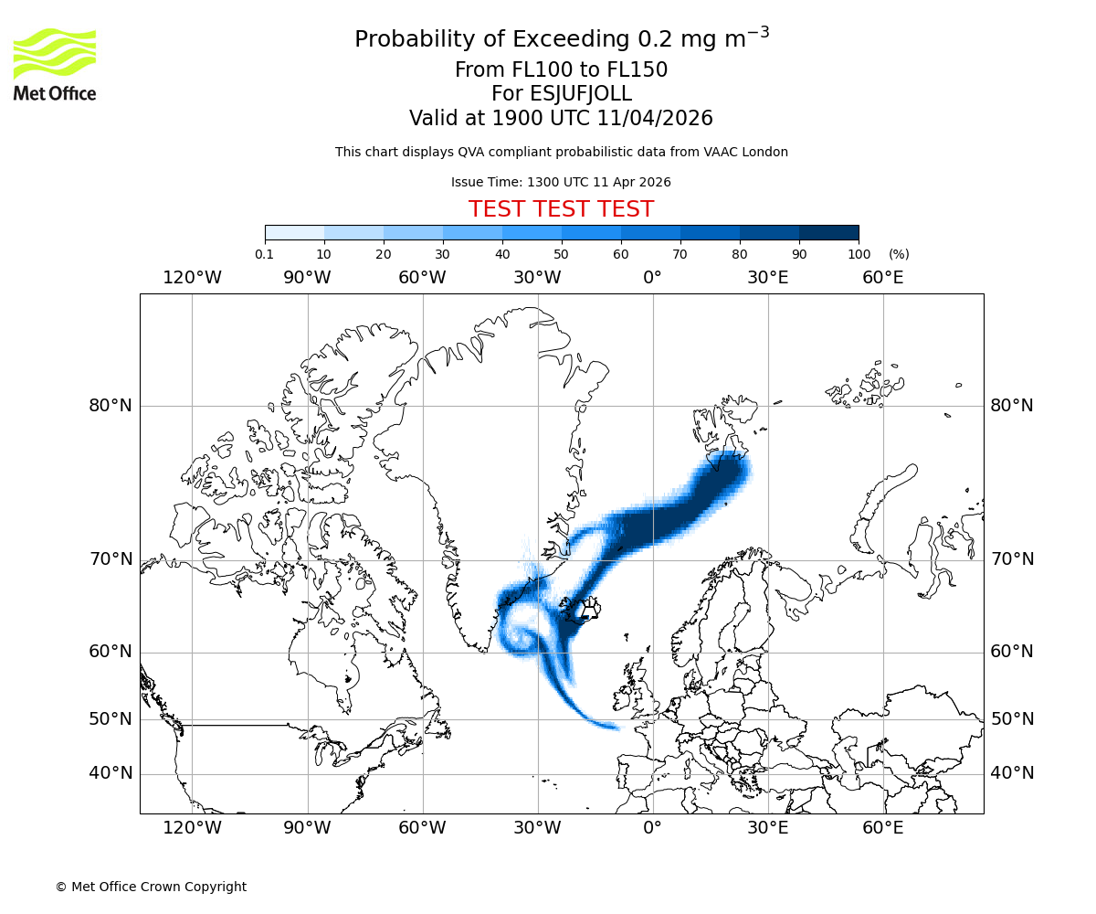 Quantitative Volcanic Ash charts (QVA) are produced in accordance with International Civil Aviation Organization (ICAO) Annex 3 requirements and are provided as well as the London Volcanic Ash Advisory Graphics (VAG) and Advisories (VAA). The lowest QVA threshold (0.2 mg/m³) matches to the areas depicted in the VAA and VAG. Both expected ash concentration and probabilistic forecast information is provided in the chart viewer below for eruptions occurring in the London Volcanic Ash Advisory Centre (VAAC) area of responsibility.
