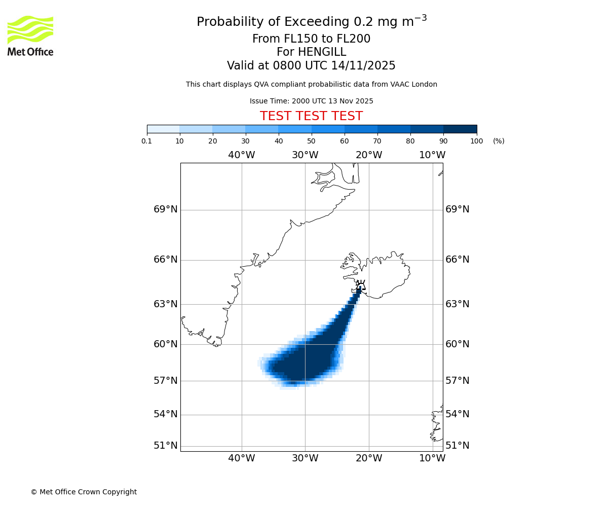 In accordance with ICAO Annex 3, Amendment 82 VAAC London will provide operational QVA forecasts from 27 November 2025 and these will be made available via a VAAC London QVA API information service. These charts are currently provided for test and evaluation purposes (not for operational use) until the introduction of the operational service.
