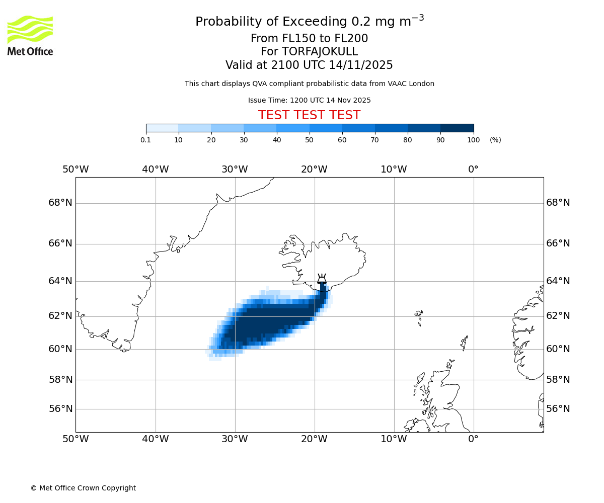 In accordance with ICAO Annex 3, Amendment 82 VAAC London will provide operational QVA forecasts from 27 November 2025 and these will be made available via a VAAC London QVA API information service. These charts are currently provided for test and evaluation purposes (not for operational use) until the introduction of the operational service.