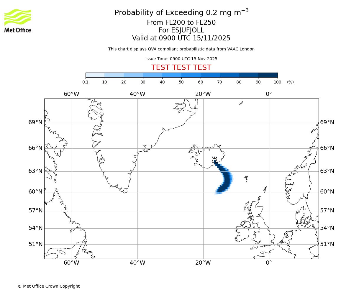 In accordance with ICAO Annex 3, Amendment 82 VAAC London will provide operational QVA forecasts from 27 November 2025 and these will be made available via a VAAC London QVA API information service. These charts are currently provided for test and evaluation purposes (not for operational use) until the introduction of the operational service.