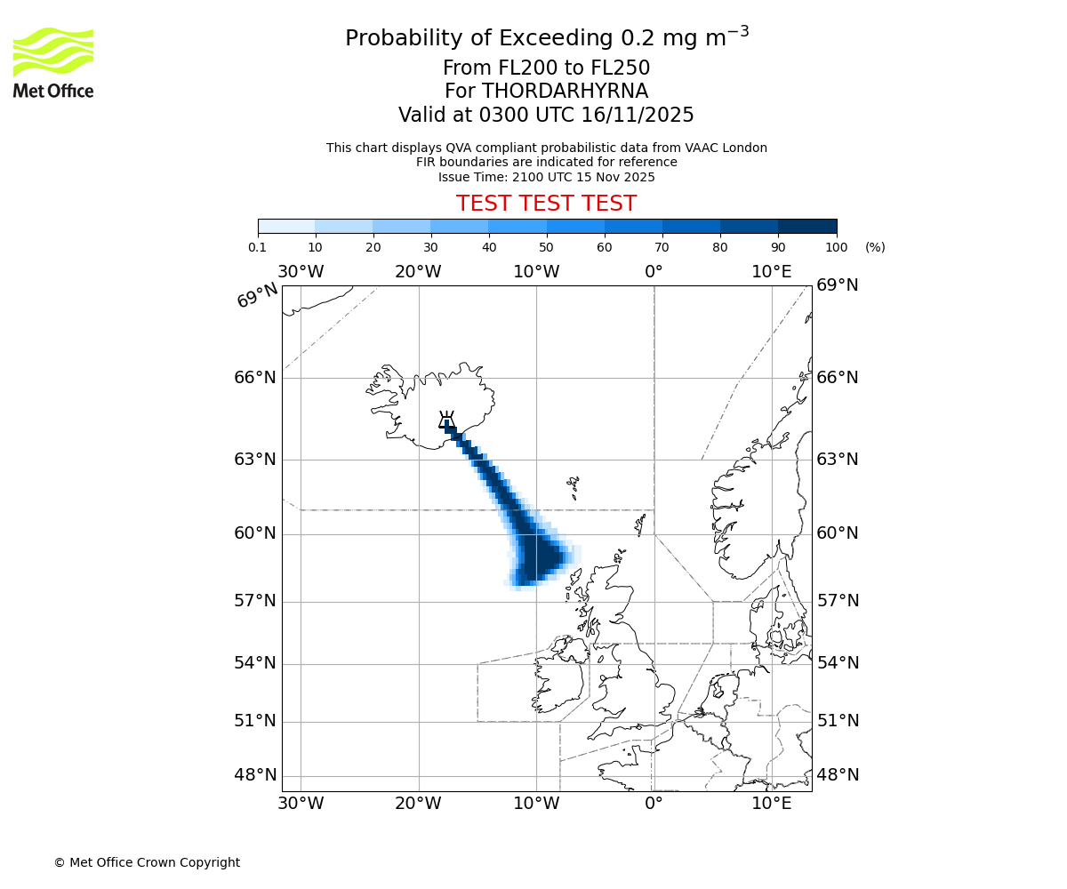 In accordance with ICAO Annex 3, Amendment 82 VAAC London will provide operational QVA forecasts from 27 November 2025 and these will be made available via a VAAC London QVA API information service. These charts are currently provided for test and evaluation purposes (not for operational use) until the introduction of the operational service.