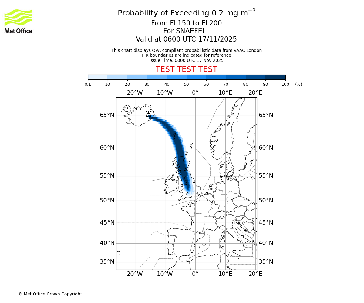 In accordance with ICAO Annex 3, Amendment 82 VAAC London will provide operational QVA forecasts from 27 November 2025 and these will be made available via a VAAC London QVA API information service. These charts are currently provided for test and evaluation purposes (not for operational use) until the introduction of the operational service.