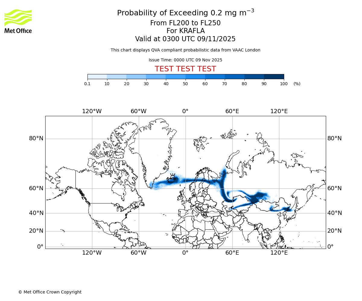 In accordance with ICAO Annex 3, Amendment 82 VAAC London will provide operational QVA forecasts from 27 November 2025 and these will be made available via a VAAC London QVA API information service. These charts are currently provided for test and evaluation purposes (not for operational use) until the introduction of the operational service.