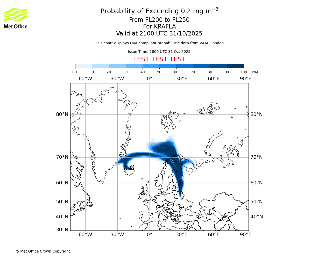 In accordance with ICAO Annex 3, Amendment 82 VAAC London will provide operational QVA forecasts from 27 November 2025 and these will be made available via a VAAC London QVA API information service. These charts are currently provided for test and evaluation purposes (not for operational use) until the introduction of the operational service.