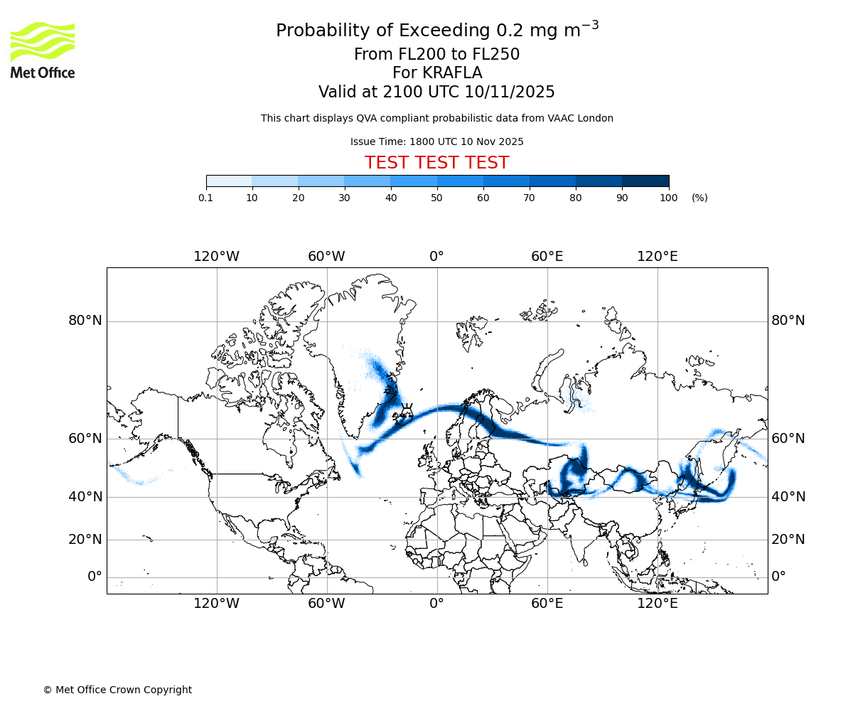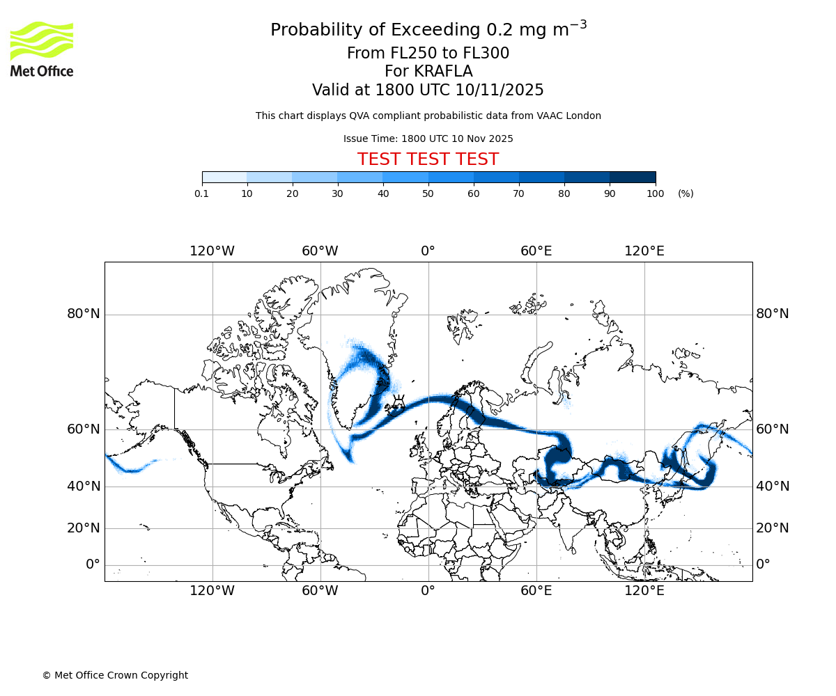 In accordance with ICAO Annex 3, Amendment 82 VAAC London will provide operational QVA forecasts from 27 November 2025 and these will be made available via a VAAC London QVA API information service. These charts are currently provided for test and evaluation purposes (not for operational use) until the introduction of the operational service.