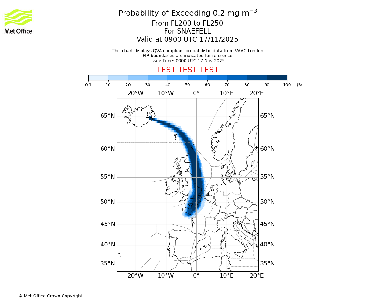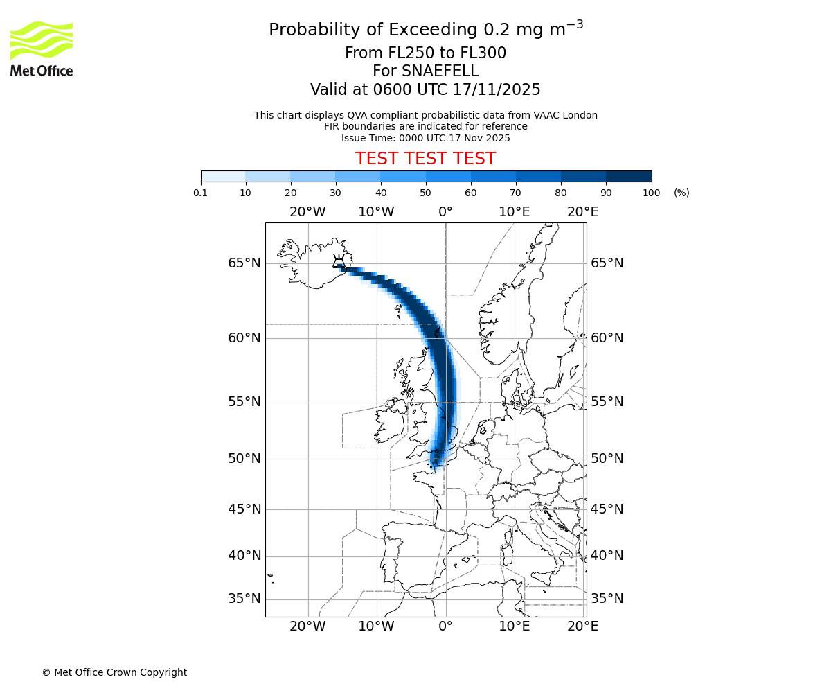 In accordance with ICAO Annex 3, Amendment 82 VAAC London will provide operational QVA forecasts from 27 November 2025 and these will be made available via a VAAC London QVA API information service. These charts are currently provided for test and evaluation purposes (not for operational use) until the introduction of the operational service.