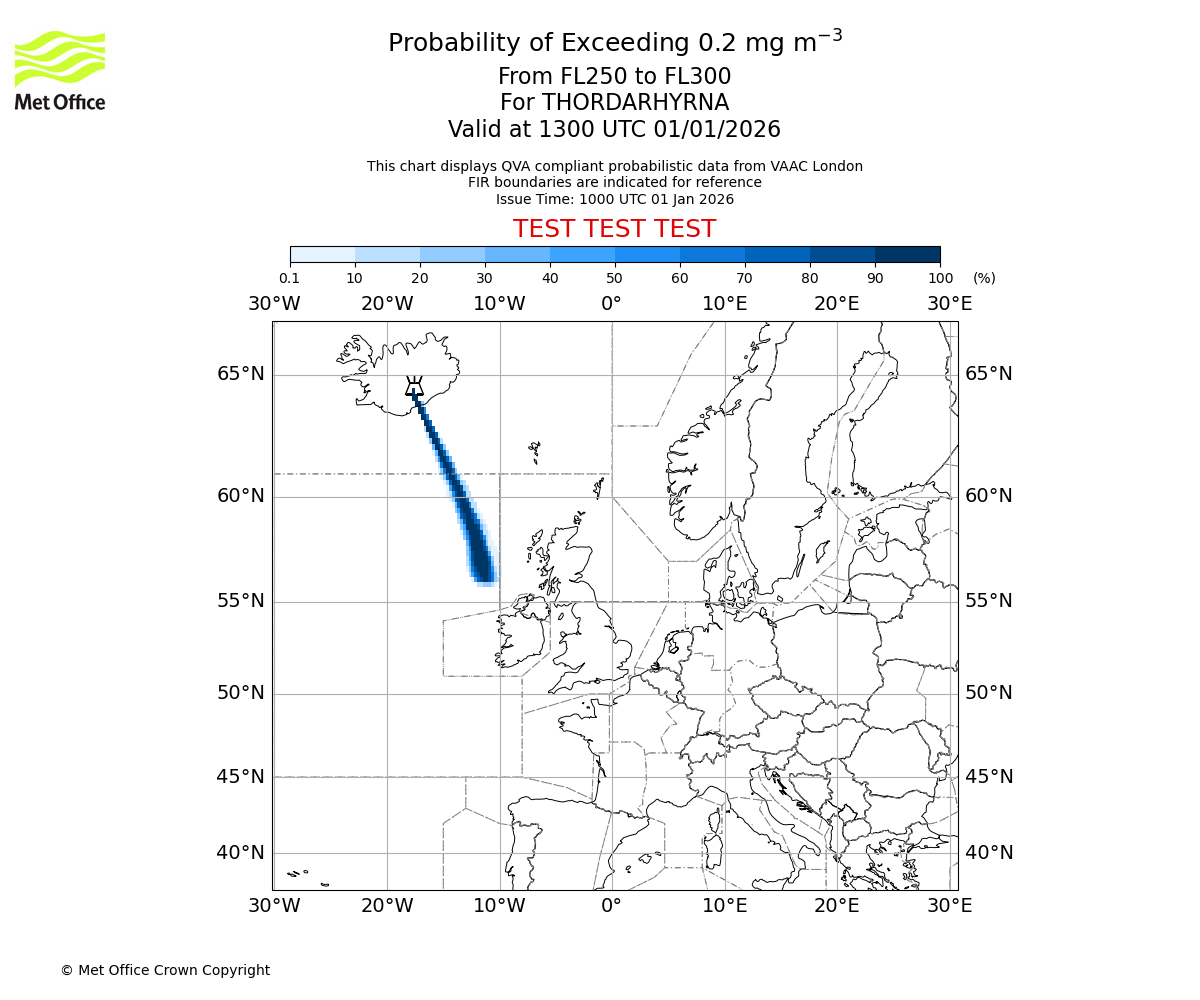 Quantitative Volcanic Ash charts (QVA) are produced in accordance with International Civil Aviation Organization (ICAO) Annex 3 requirements and are provided as well as the London Volcanic Ash Advisory Graphics (VAG) and Advisories (VAA). The lowest QVA threshold (0.2 mg/m³) matches to the areas depicted in the VAA and VAG. Both expected ash concentration and probabilistic forecast information is provided in the chart viewer below for eruptions occurring in the London Volcanic Ash Advisory Centre (VAAC) area of responsibility.