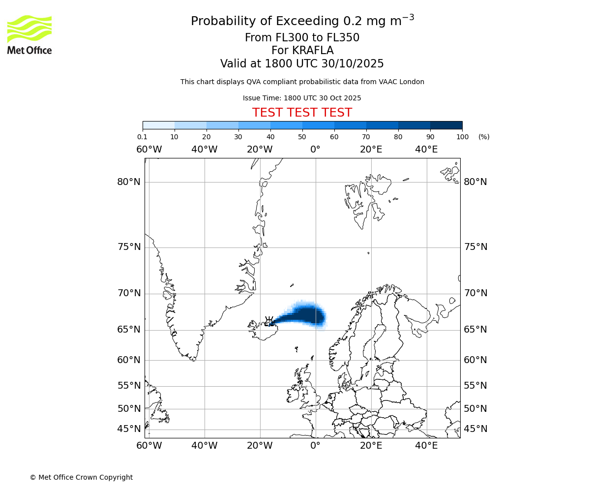 In accordance with ICAO Annex 3, Amendment 82 VAAC London will provide operational QVA forecasts from 27 November 2025 and these will be made available via a VAAC London QVA API information service. These charts are currently provided for test and evaluation purposes (not for operational use) until the introduction of the operational service.