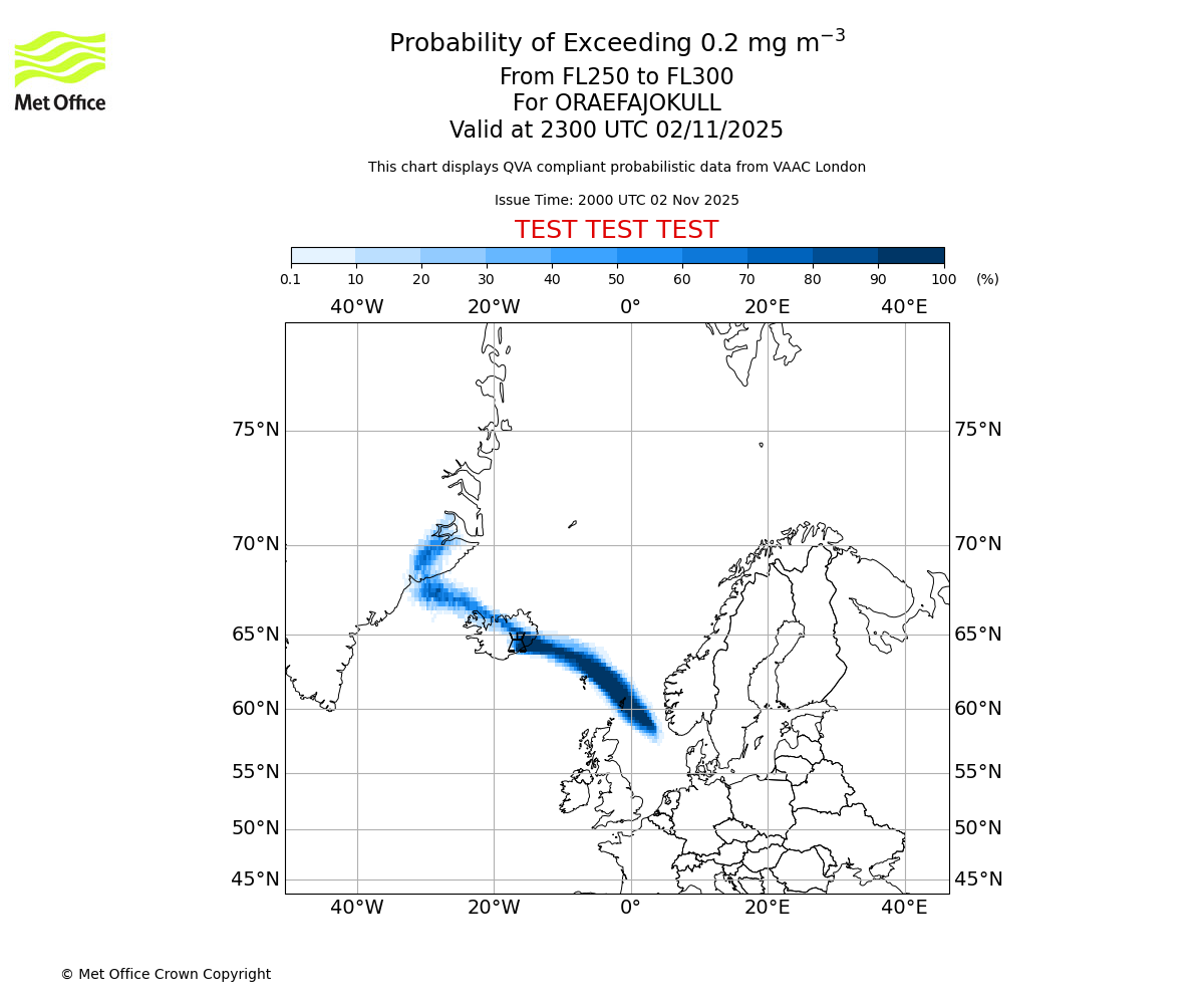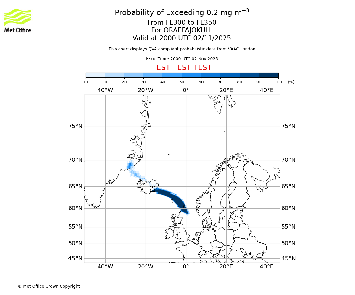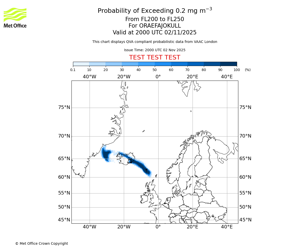 In accordance with ICAO Annex 3, Amendment 82 VAAC London will provide operational QVA forecasts from 27 November 2025 and these will be made available via a VAAC London QVA API information service. These charts are currently provided for test and evaluation purposes (not for operational use) until the introduction of the operational service.
