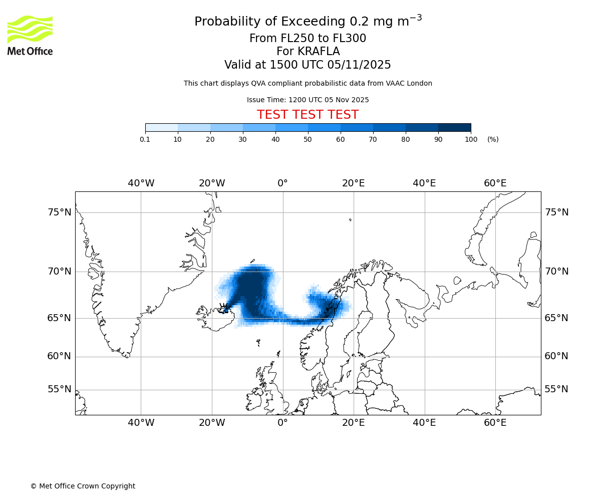In accordance with ICAO Annex 3, Amendment 82 VAAC London will provide operational QVA forecasts from 27 November 2025 and these will be made available via a VAAC London QVA API information service. These charts are currently provided for test and evaluation purposes (not for operational use) until the introduction of the operational service.