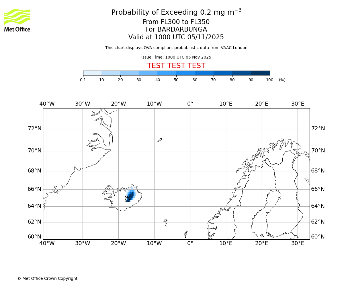 In accordance with ICAO Annex 3, Amendment 82 VAAC London will provide operational QVA forecasts from 27 November 2025 and these will be made available via a VAAC London QVA API information service. These charts are currently provided for test and evaluation purposes (not for operational use) until the introduction of the operational service.