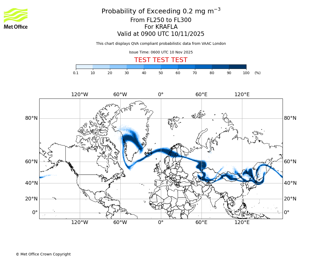 In accordance with ICAO Annex 3, Amendment 82 VAAC London will provide operational QVA forecasts from 27 November 2025 and these will be made available via a VAAC London QVA API information service. These charts are currently provided for test and evaluation purposes (not for operational use) until the introduction of the operational service.