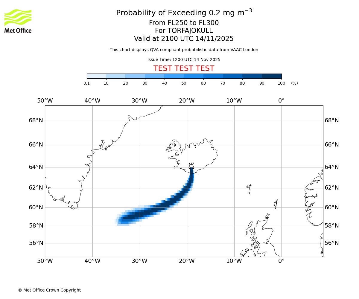 In accordance with ICAO Annex 3, Amendment 82 VAAC London will provide operational QVA forecasts from 27 November 2025 and these will be made available via a VAAC London QVA API information service. These charts are currently provided for test and evaluation purposes (not for operational use) until the introduction of the operational service.