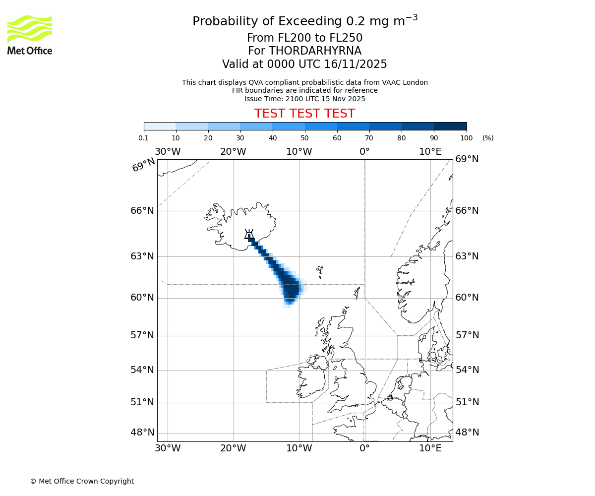 In accordance with ICAO Annex 3, Amendment 82 VAAC London will provide operational QVA forecasts from 27 November 2025 and these will be made available via a VAAC London QVA API information service. These charts are currently provided for test and evaluation purposes (not for operational use) until the introduction of the operational service.