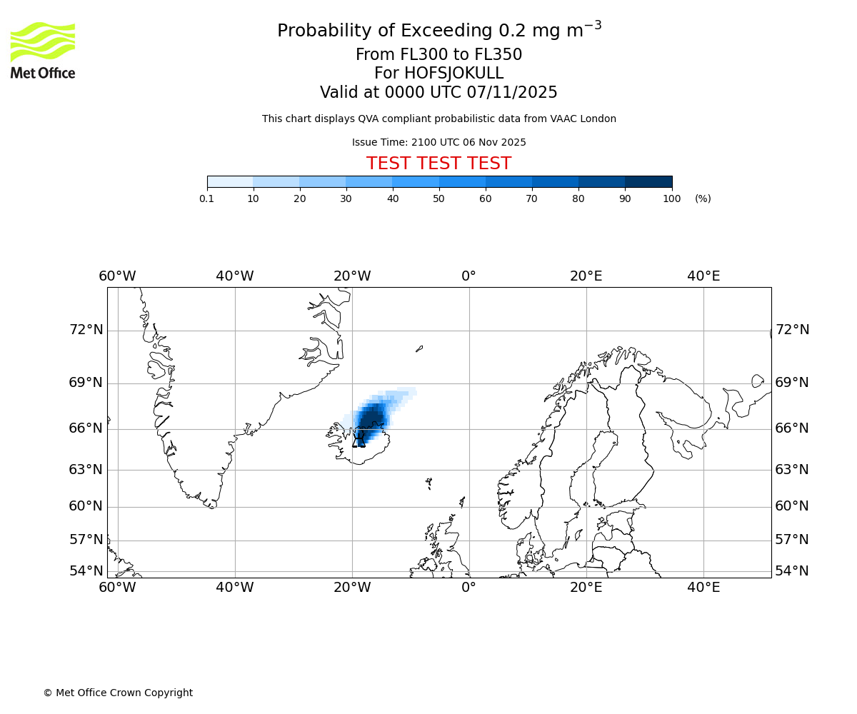 In accordance with ICAO Annex 3, Amendment 82 VAAC London will provide operational QVA forecasts from 27 November 2025 and these will be made available via a VAAC London QVA API information service. These charts are currently provided for test and evaluation purposes (not for operational use) until the introduction of the operational service.