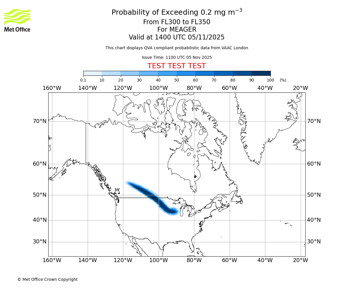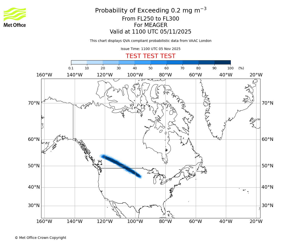 In accordance with ICAO Annex 3, Amendment 82 VAAC London will provide operational QVA forecasts from 27 November 2025 and these will be made available via a VAAC London QVA API information service. These charts are currently provided for test and evaluation purposes (not for operational use) until the introduction of the operational service.