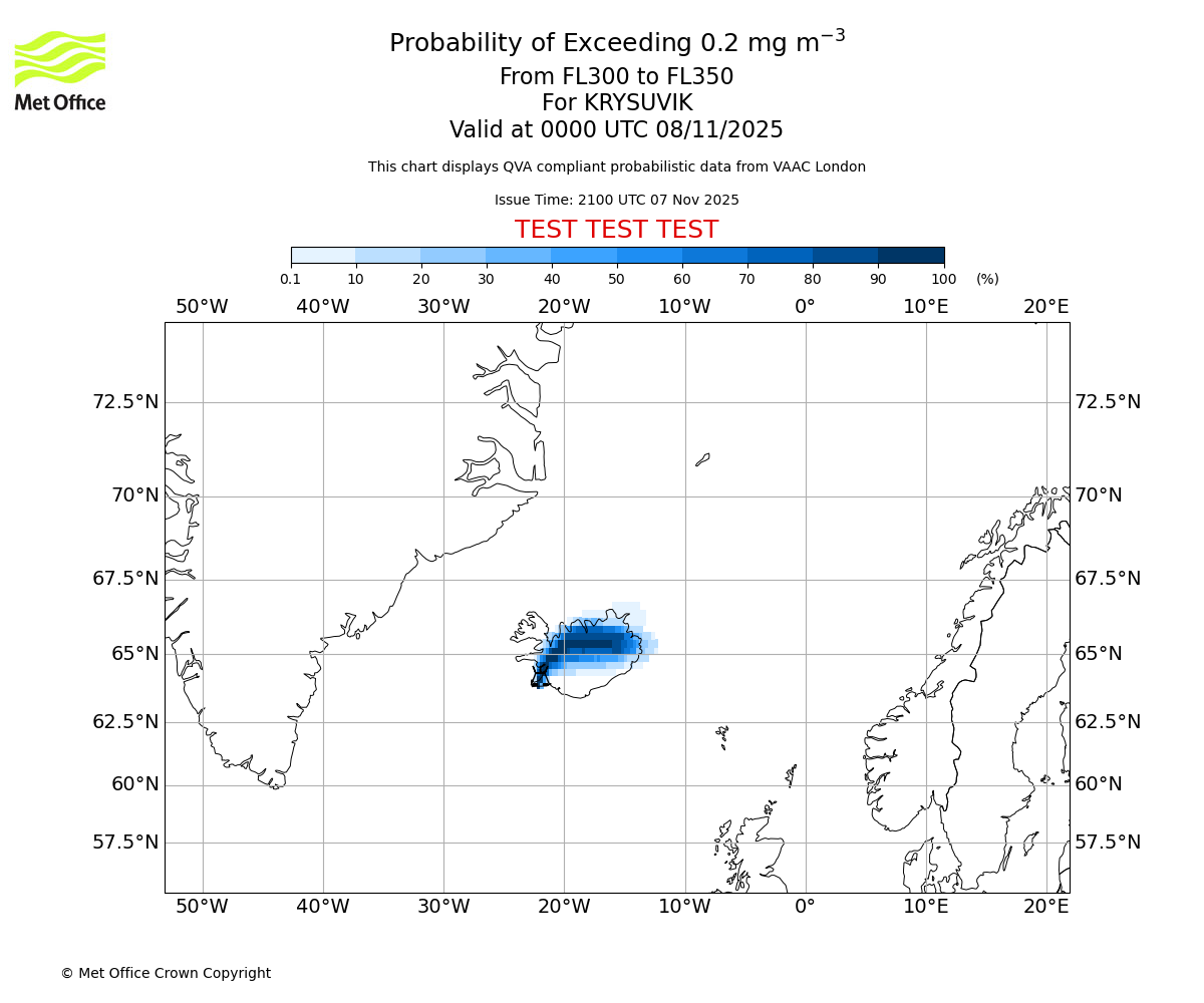 In accordance with ICAO Annex 3, Amendment 82 VAAC London will provide operational QVA forecasts from 27 November 2025 and these will be made available via a VAAC London QVA API information service. These charts are currently provided for test and evaluation purposes (not for operational use) until the introduction of the operational service.