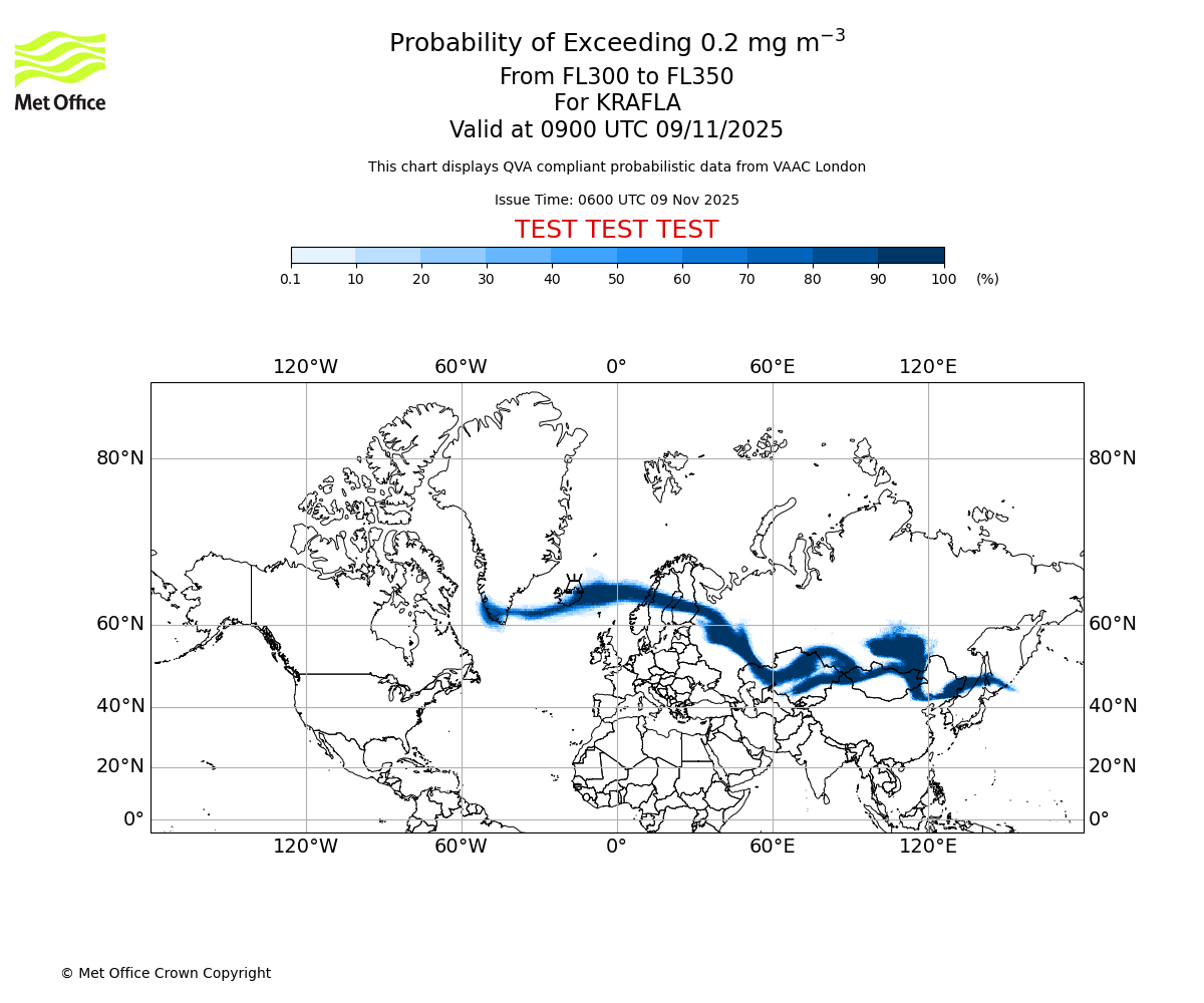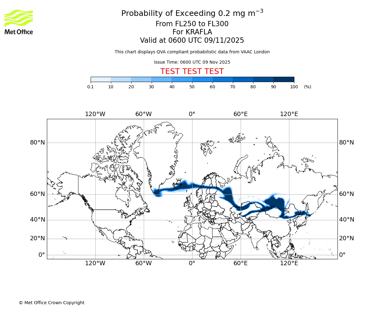 In accordance with ICAO Annex 3, Amendment 82 VAAC London will provide operational QVA forecasts from 27 November 2025 and these will be made available via a VAAC London QVA API information service. These charts are currently provided for test and evaluation purposes (not for operational use) until the introduction of the operational service.
