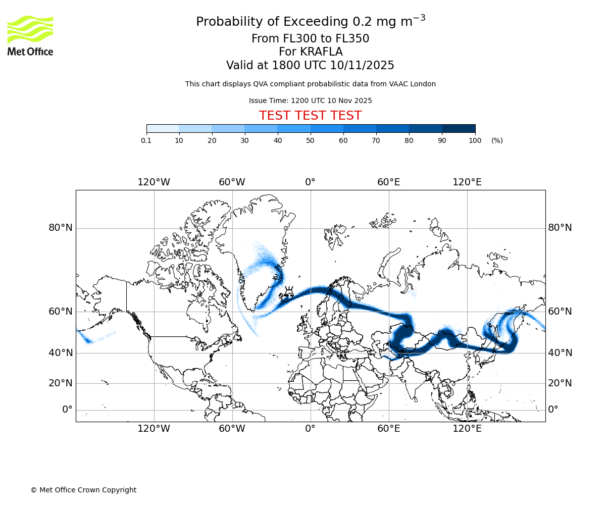 In accordance with ICAO Annex 3, Amendment 82 VAAC London will provide operational QVA forecasts from 27 November 2025 and these will be made available via a VAAC London QVA API information service. These charts are currently provided for test and evaluation purposes (not for operational use) until the introduction of the operational service.